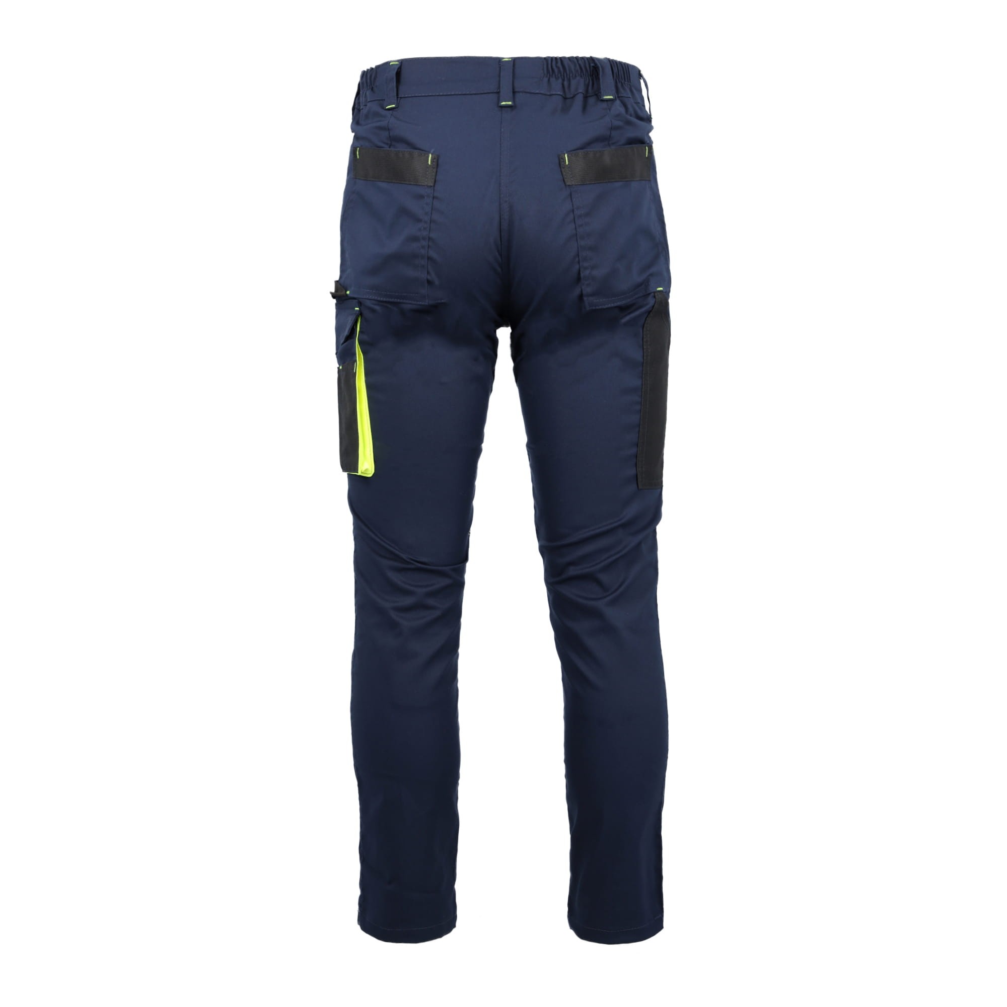 Spodnie robocze wykonane z wytrzymałej na rozdzieranie i tarcie tkaniny.
