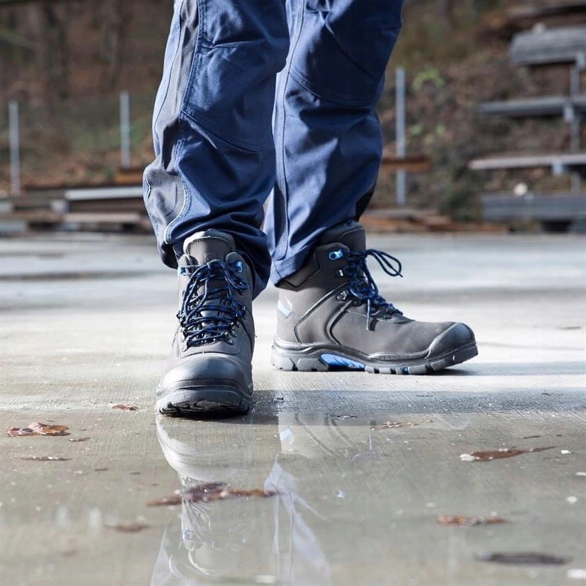 Buty robocze wykonane w kategorii S3 wykonane ze skóry nubuk wkładka kevlarowa antyprzebiciowa która chroni przed przekłuciem kompozytowy podnosek odporny na uderzenie z siłą 200J
